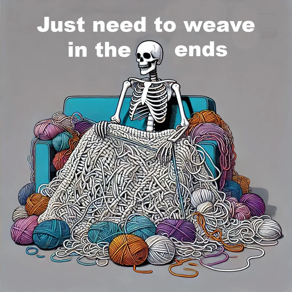 It takes longer to weave in ends than to make the whole project, and honestly, at this point, you’re considering just leaving them there and calling it “fringe.”