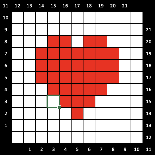 Row 12 (Down) (10 Blocks) White x2, Red x5, White x3